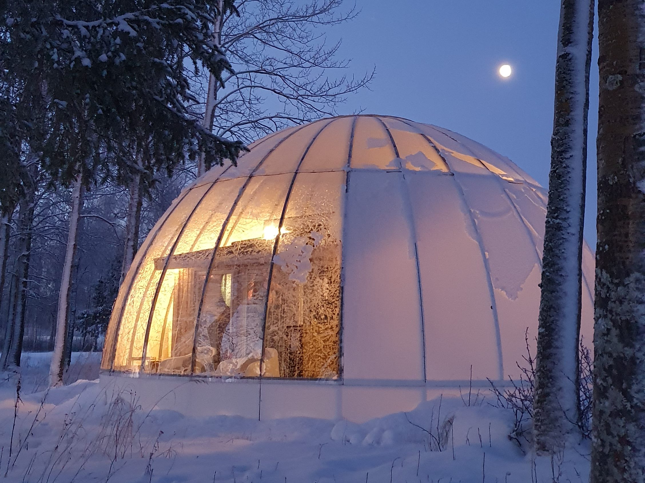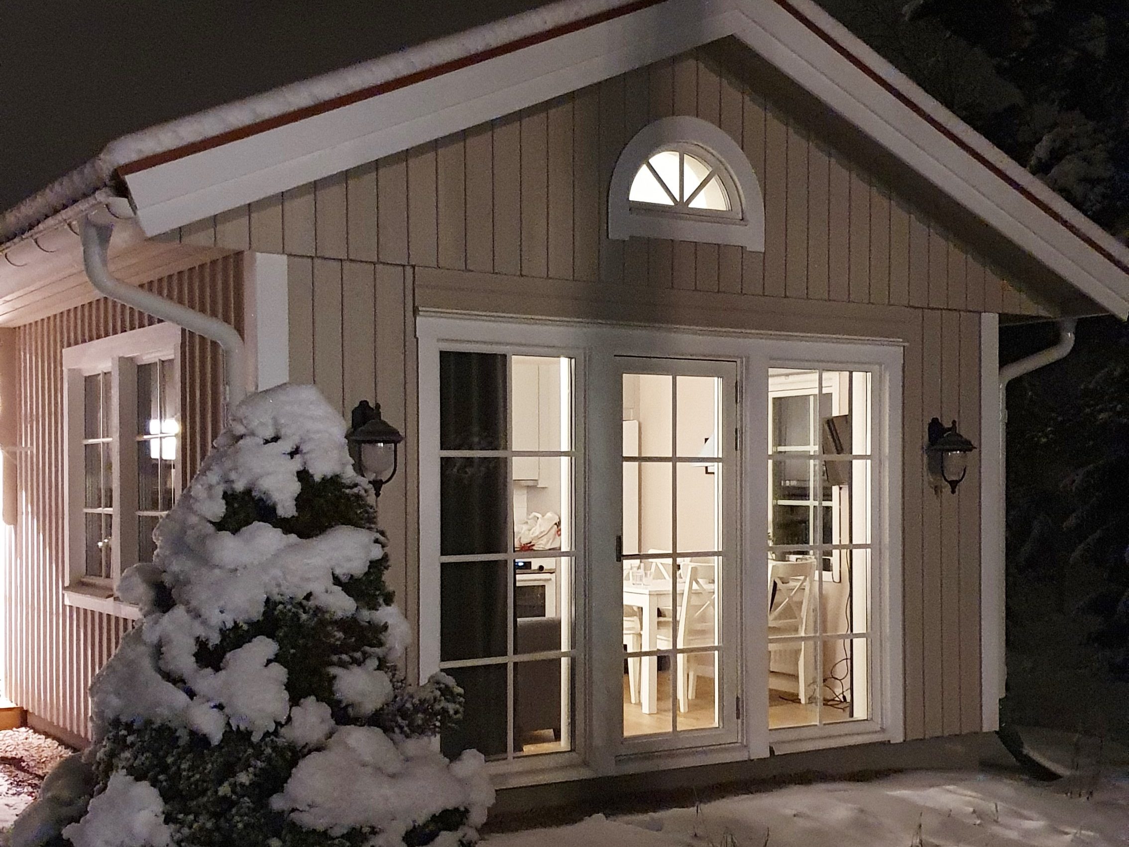 Az éjszakát egy mesebeli házikóban töltöttük Mora mellett az erdő szélén, ahol őzike nyomok haladtak el az ablakunk előtt, óriás, hófödte fenyők tornyosultak fölénk, melyek szinte bevilágították a környéket és most először örültünk annak, hogy az idén nem utaztunk külföldre, hanem megtapasztalhattuk ezt az észak-svéd, téli mesevilágot, mert hát hiába élünk Svédországban, ilyet nem látunk ott, ahol élünk.