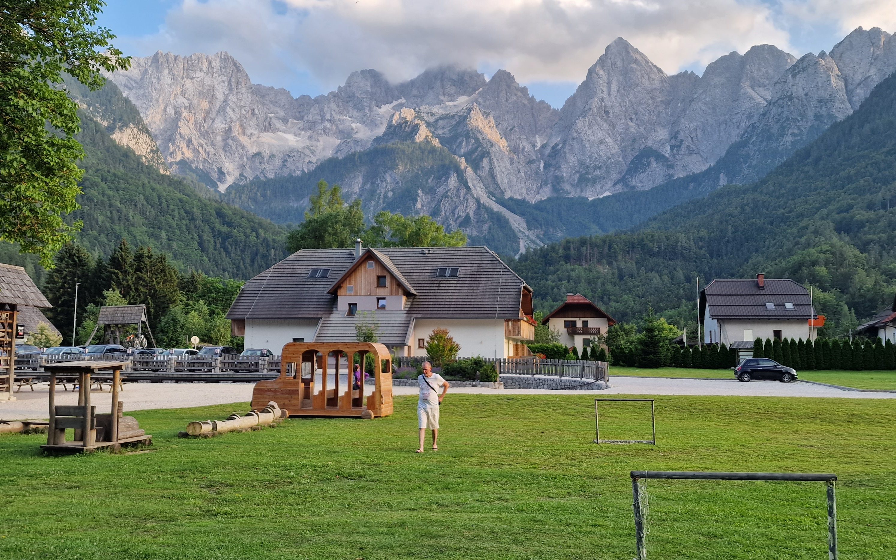 A Bledi tó után Kranjska Gora felé vettük az irányt, mely Szlovénia egyik legszebb alpesi üdülőhelye a Triglav Nemzeti Park hegyei és jeges tavai között. A város télen Szlovénia egyik legjobb síparadicsoma. Terveink között a Pericnik vízesés meglátogatása volt a cél, mely az egy lenyűgöző vízesés a közelben, és csak kb fél órára van Kransjska Gorától. Viszont a szállásunk annyira idilli helyen volt, hogy úgy éreztük, egy képeslapba csöppentünk bele, valamint Lóránt is talált játszótársakat, hogy feladtuk ezirányú tervünket és inkább boroztunk a kertben elnézve a kilátást és a focizó gyerekeket. Hiába, akinek gyereke van az egy idő után megtanul eelengedni dolgokat és „újratervezni”.
