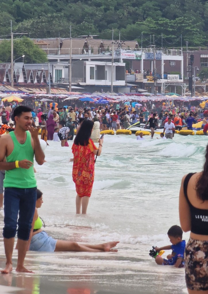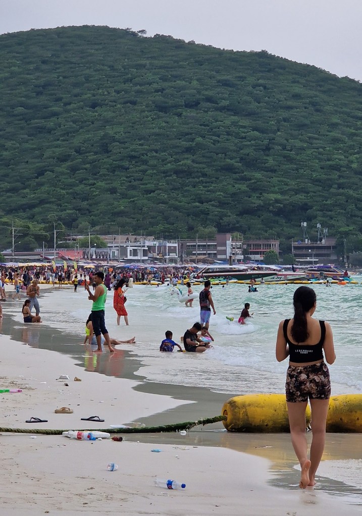 Érkezésünkkor már tele volt a strand emberekkel és különböző vízi járművekkel, és minden volt, csak nem csendes és nyugodt. Banáncsónakok, motorcsónakok, jetskik bőgették a motorjukat, és alig volt hely köztük bemenni a vízbe és fürdeni. A strand szemetes volt, amiből a vízbe is került, és tele, de tele volt emberrel.