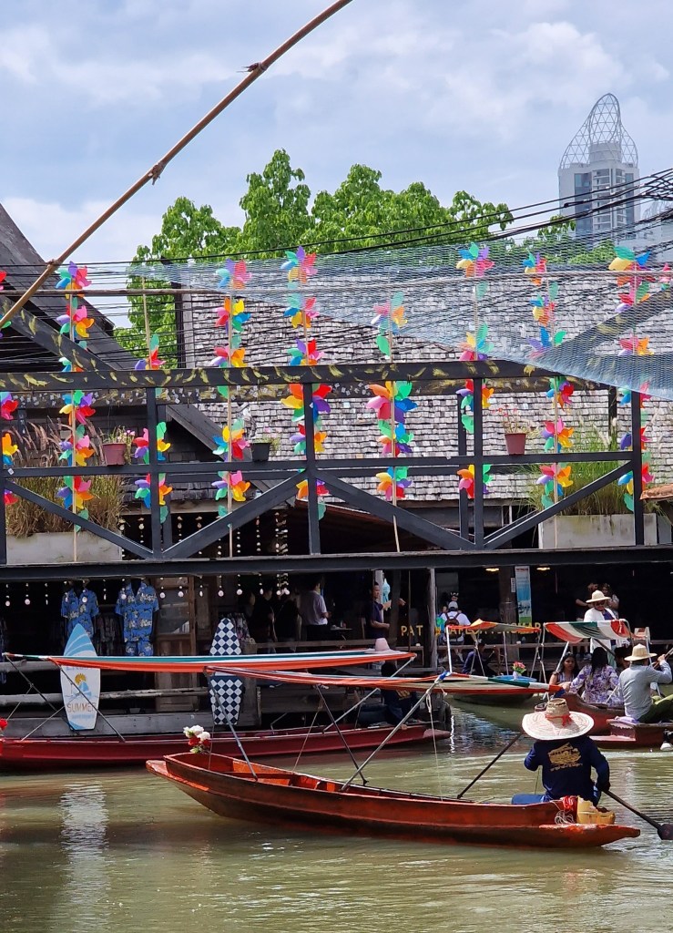 Bár azt olvastam a neten, hogy ez nem egy autentikus thai úszó piac, hanem amolyan turistáknak épült városka, végül egész klassz kis helynek bizonyult. Kissé távolabb esik ugyan a központtól, de taxival nem vészes kijutni. Az egész helyet egy kis folyócska mentén építették fel és annak ellenére, hogy az épületek újak, hagyományos, régi thai kunyhóknak néznek ki.