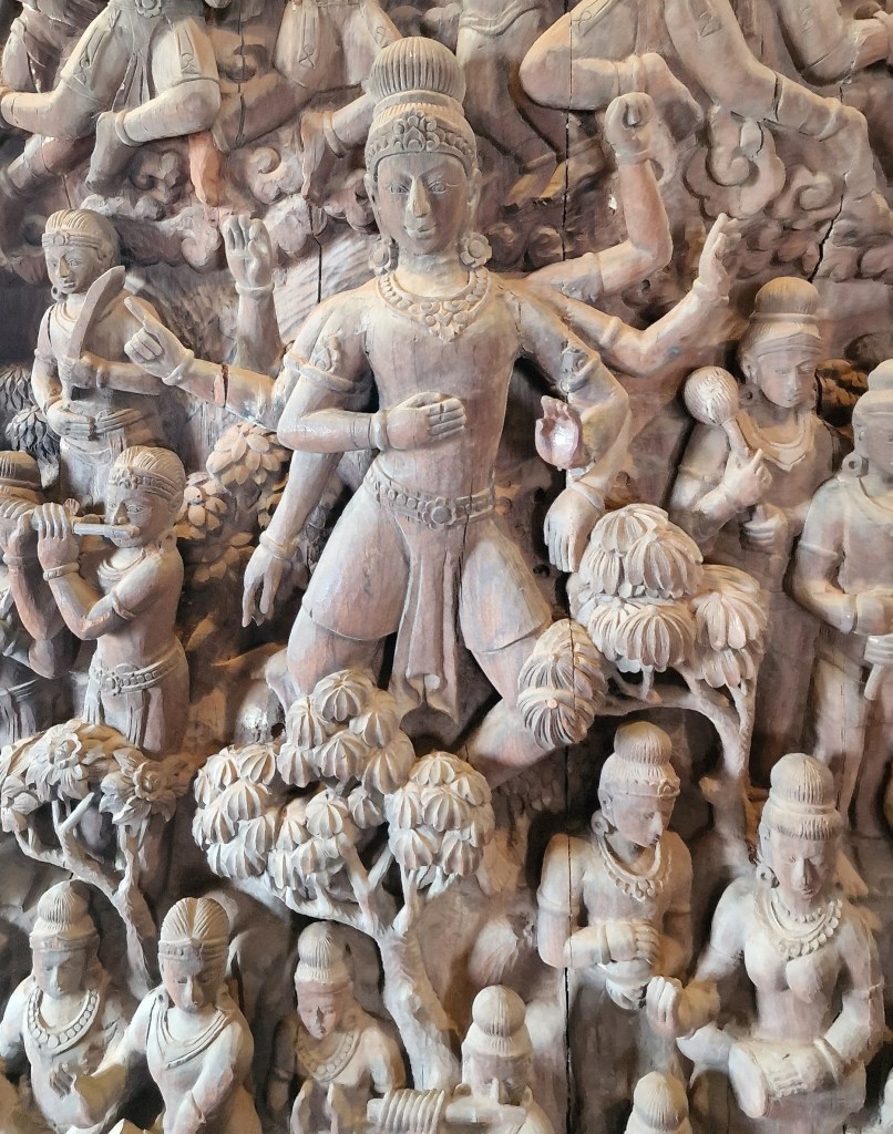 Az igazság templomaként is emlegetett épület valójában csak formáját tekintve néz ki templomnak, de funkcióját nézve nem az. A szentély egy óriási fa építmény, melyben egyetlen fém szeg sincs, és melyen 1981 óta folyamatosan dolgoznak. A megálmodója egy thai üzletember, aki ezzel az építménnyel az emberi civilizációnak, művészetnek, kultúrának és filozófiának szeretne tisztelegni. A szentélyt kecses faragványok, boltívek, oszlopok díszítik, és belül óriási terek vannak, különböző témák szerint elosztva.