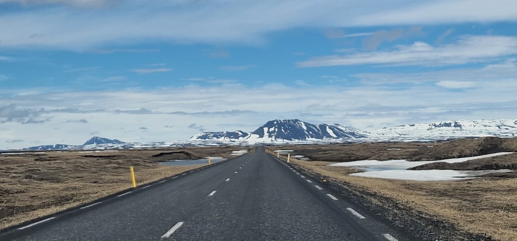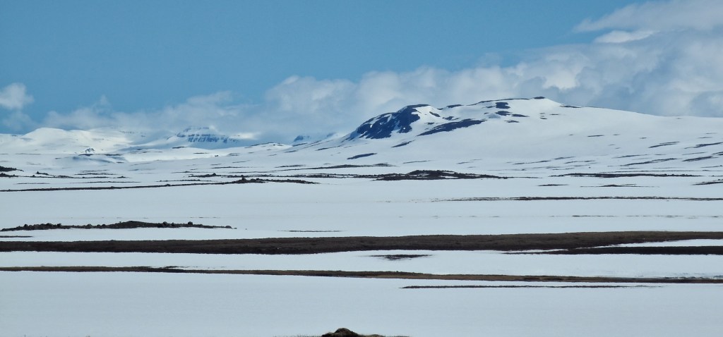 Elhagyva a Keleti-fjordokat, újra megtapasztaltuk a táj teljes változását. Az addigi kopár óriássziklák és öblök hóval fedett hegycsúcsokká alakultak át, majd a hágókon áthaladva, a horizont kitágult és ezután csak a távolban bukkantak fel a hegyek körvonalai.
