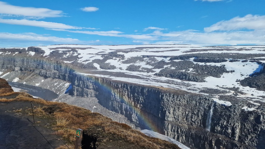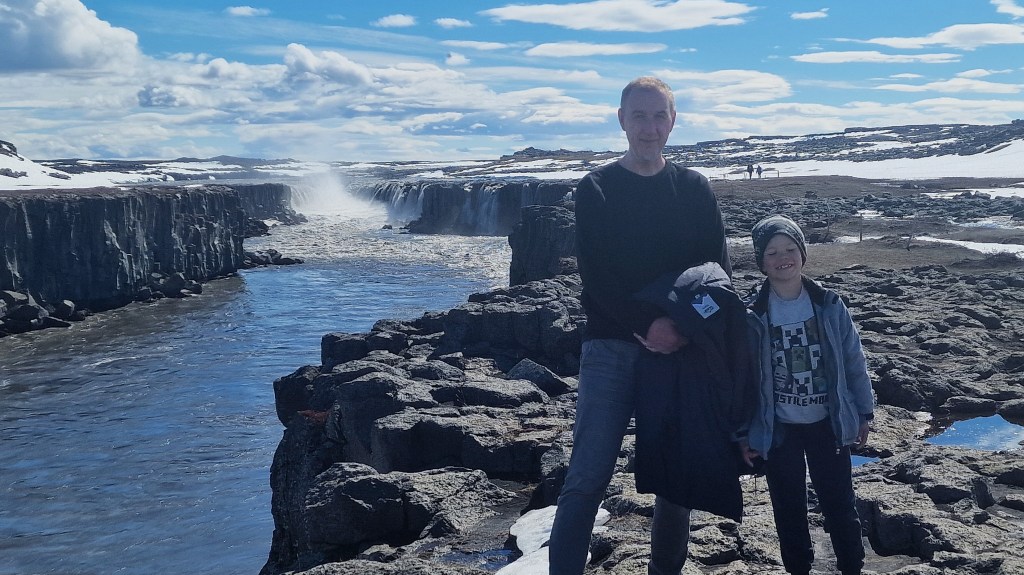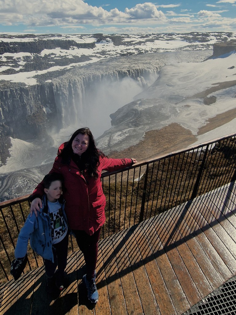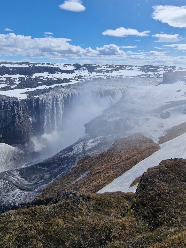 Jól tettük, hogy nem fordultunk vissza, mert elérve a vízesést ismét olyan látvány tárult a szemünk elé, amilyet még elképzelni sem tudtunk addig. A Dettifoss, Izland egyik legismertebb természeti csodája, olyan látvány, amely egy pillanat alatt lenyűgöz és meghökkent. Képzeljetek el egy hatalmas gleccserfolyót, mely mintha a föld szívéből törne elő, dübörögve zúdul alá egy 100 méter széles szakadék széléről. A víztömeg 44 méter magasból zuhan a mélybe, majd dörgő robajjal szétfröccsen. Ez a legnagyobb vízhozamú vízesés Európában, és az elemi erő szinte tapintható a levegőben.