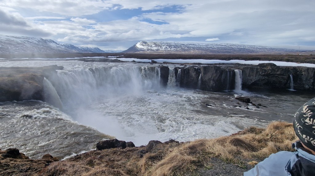 Következő állomásunk a Mývatn tótól kb. 50 km-re található Godafoss vízesés volt, amely több izlandi vízeséshez hasonlóan szintén patkó alakú. A víz itt 12 m magasból és 30 m szélesen zúdul alá, és egy párszáz méteres ösvényen könnyen megközelíthető.