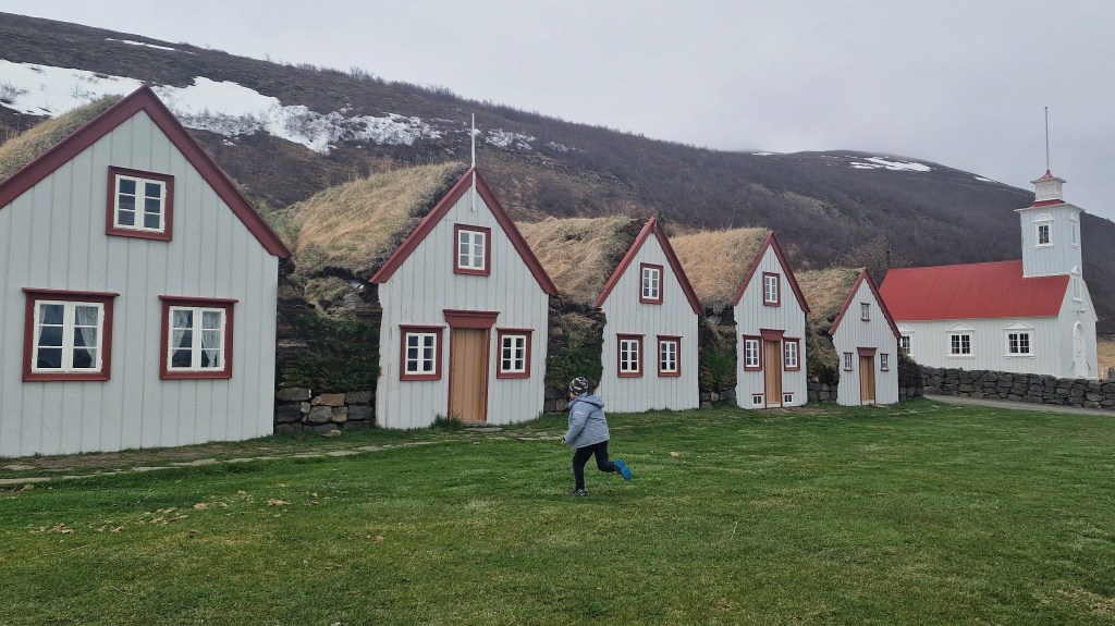 Mi sajnos nem láttunk, viszont spontán megálltunk egy 19-ik századi farm múzeumnál, ami sajnos nem volt nyitva, viszont körbe lehetett sétálni, és bepillantást nyerni abba, hogyan éltek 150 évvel ezelőtt az izlandi gazdák.