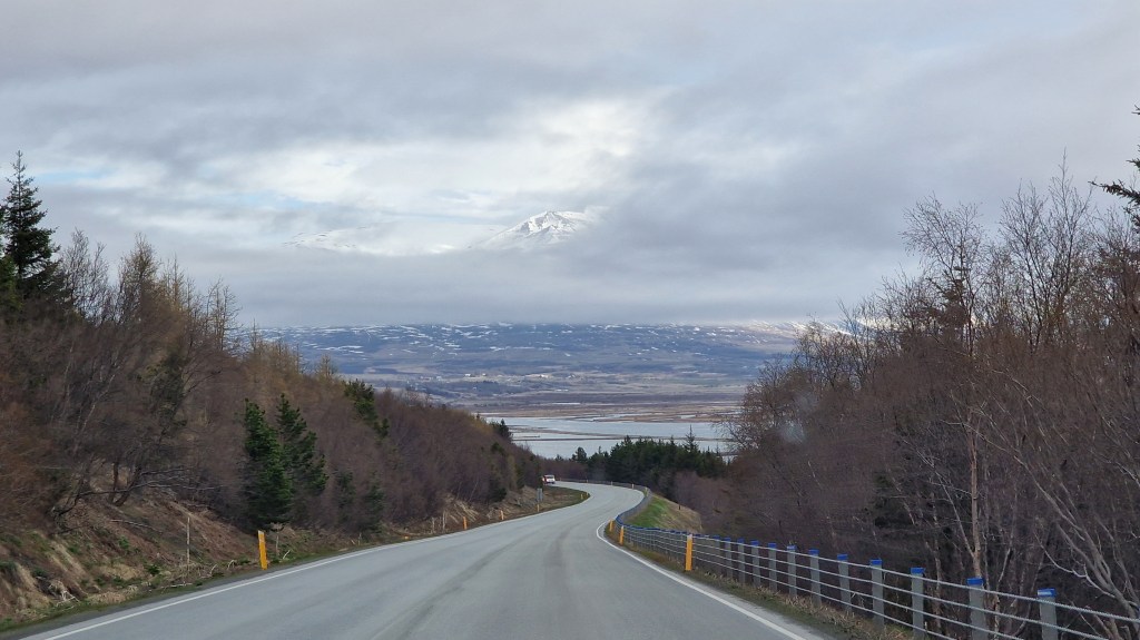 Fontos tudni, hogy Akureyri-be két úton lehet eljutni. Az egyik az izlandi Ring road, azaz az 1-es számú út, a másik egy kerülő út, a 84-es, illetve 83-as utak. Mi a kerülőt választottuk, mert ezzel kikerültünk egy fizetős alagutat, mely kb. 5000 forintba került volna. Az igazság az, hogy nem az összeg miatt kerültünk, hanem azért, hogy többet lássunk. A kerülő kb. 10 km-el hosszabb, de cserébe gyönyörködhetünk az északi fjordokban, és akinek szerencséje van, az még bálnát is láthat, mert néha beúsznak idáig.