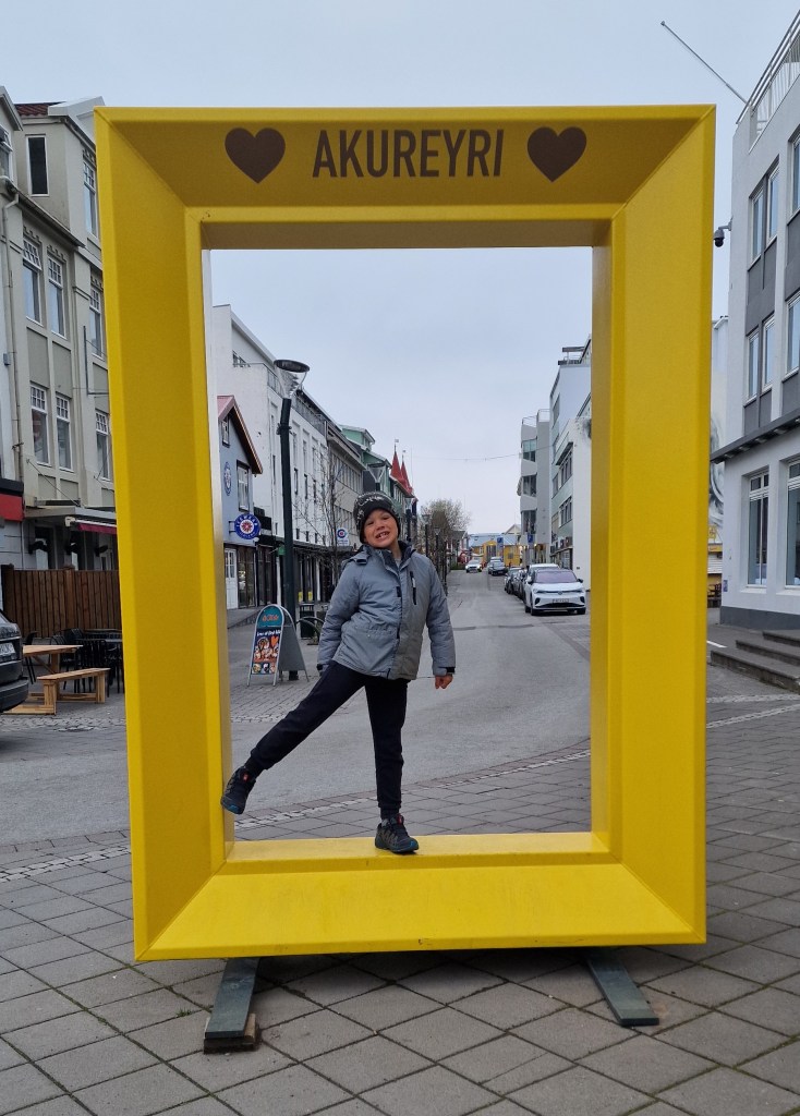 Aznapi szállásunk az innen egy kőhajításnyira lévő északi fővárosban, Akureyri-ben volt, mely egy igazi kis gyöngyszem a hegyek ölelésében. A színes házak, a helyi kávézók, a mosolygó közlekedési lámpák a gyerek kedvencei lettek.