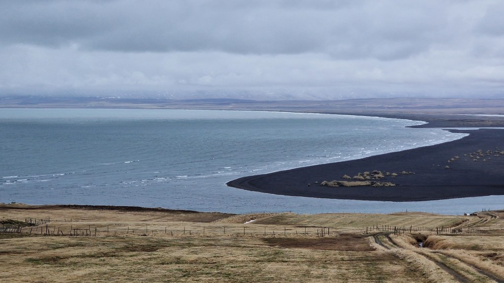 Az 1-es útról letérve olyan kavicsos és gödrös úton haladtunk tovább, hogy nem hittük el, hogy tényleg Izlandon vagyunk, és olyan viharos szél fújt, hogy azt hittük beleborít minket az óceánba. Szerencsére épségben megérkeztünk, de annyira fújt a szél, hogy nem tudtunk sokáig maradni, igazi turistásan csak egy-egy képet készítettünk, majd visszapattantunk a kocsiba és mentünk tovább.