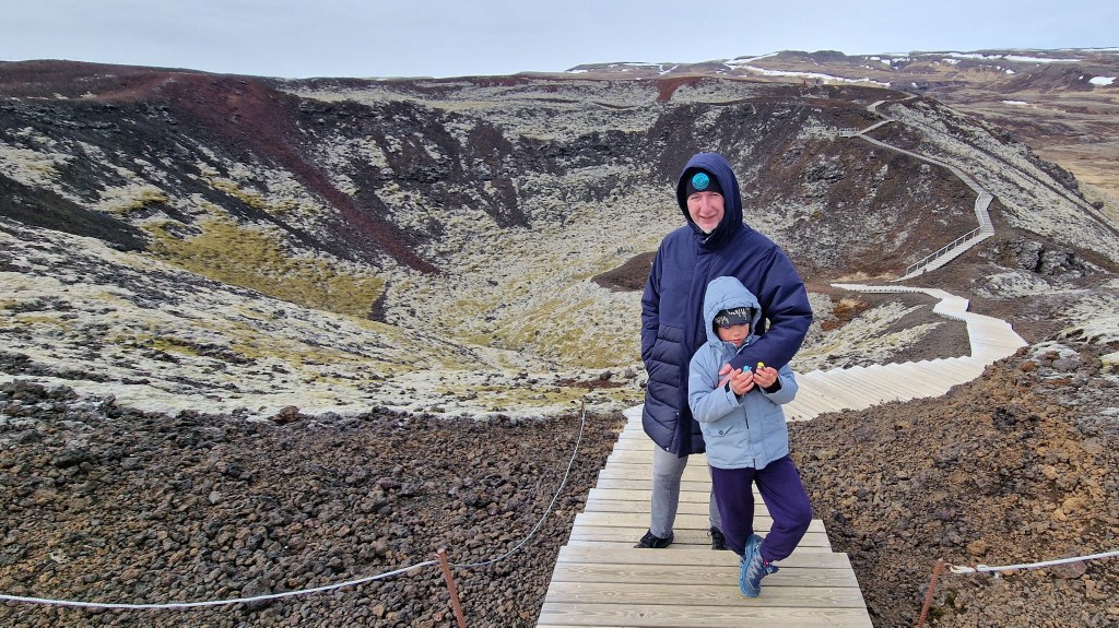 A túra nem különösebben megerőltető, így gyerekekkel is bátran vállalkozhatunk rá. Érdemes réteges öltözetben érkezni, mert az időjárás gyorsan változhat, és a szél a kráter peremén különösen erős lehet. Mivel ezen a napon sokat ültünk autóban, ez a megálló kiváló volt arra, hogy szaladgáljunk egy jót, és megmozgassuk a végtagjainkat az ösvényen, mielőtt végül visszaindulnánk Reykjavíkba.